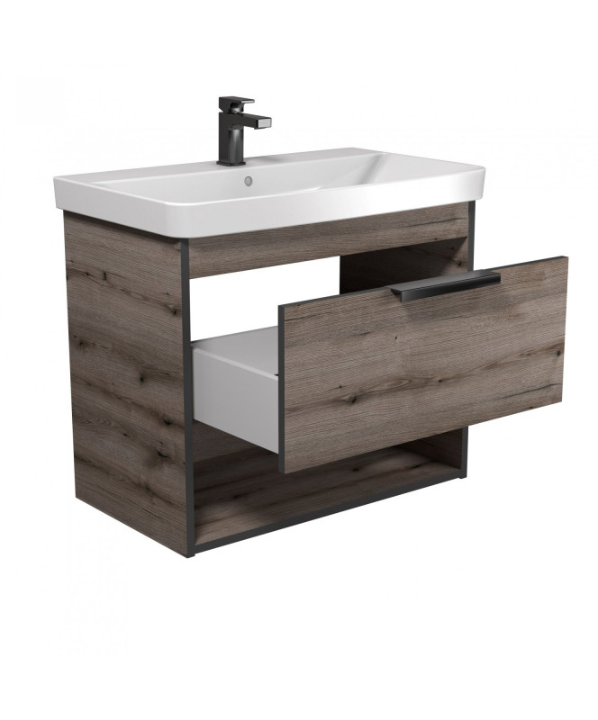 Готов к использованию, собран и готов к установке. В комплекте уже включен прямоугольный умывальник, гармонично сочетающийся с тумбой по размерам и создающий единый стильный образ.