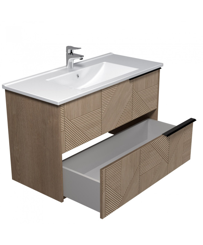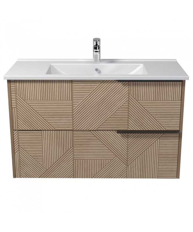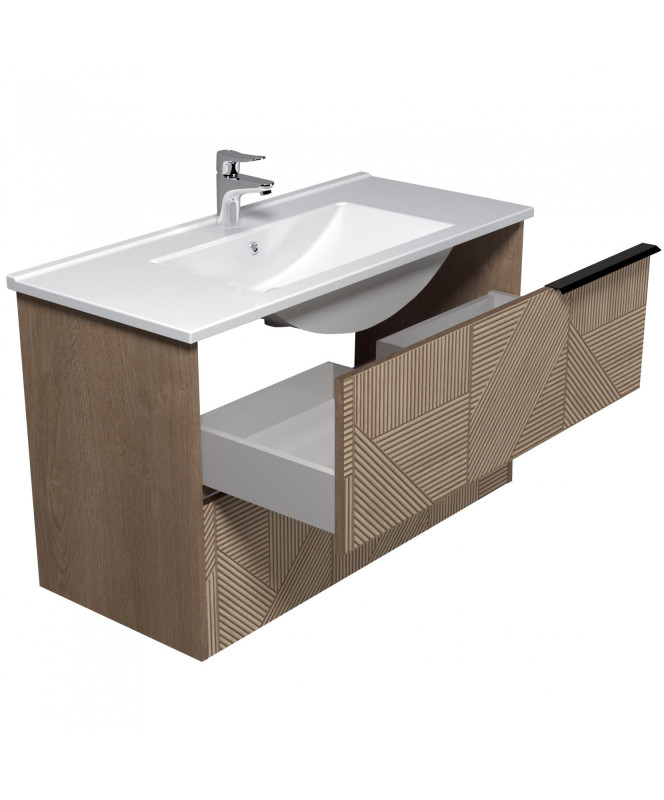 Погрузитесь в атмосферу современного дизайна и функциональности с тумбой Illusion от MDD Group. Эта коллекция мебели для ванной сочетает в себе естественные оттенки дерева и эстетический узор, создавая уникальный интерьер вашей ванной комнаты.