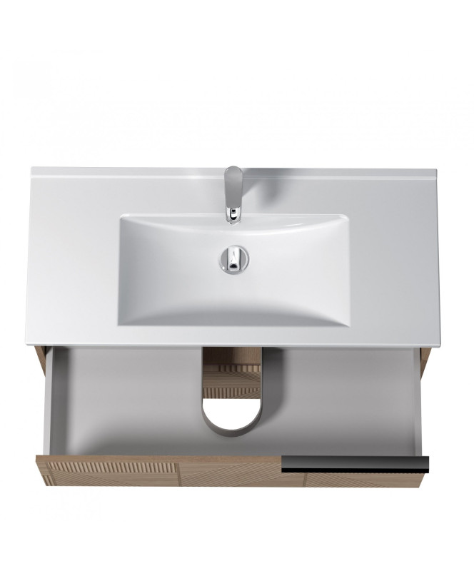 Тумба подвесная Мойдодыр Illusion 100-A с раковиной Creavit Su-100 ДСП дуб натуральный 00-0008595