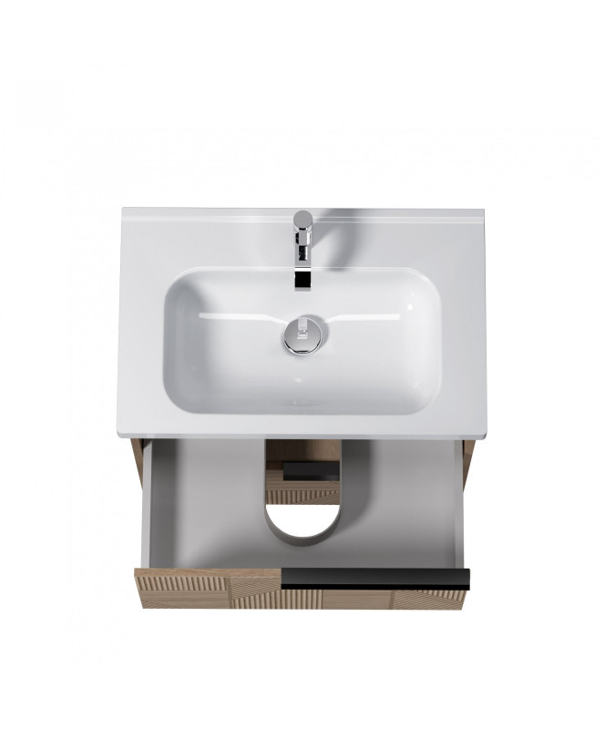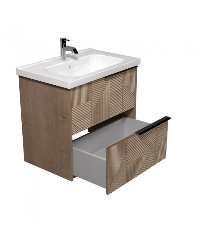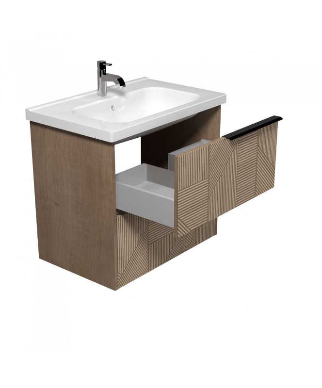 Погрузитесь в атмосферу современного дизайна и функциональности с тумбой Illusion от MDD Group. Эта коллекция мебели для ванной сочетает в себе естественные оттенки дерева и эстетический узор, создавая уникальный интерьер вашей ванной комнаты.