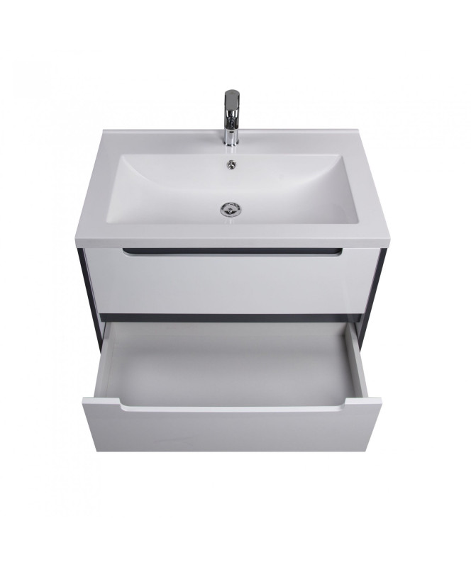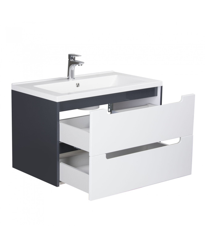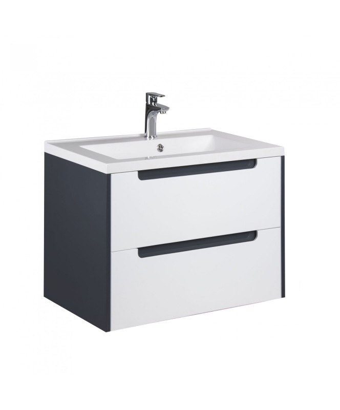 Тумба подвесная Мойдодыр Paula 60-A с раковиной Cosmopolitan ДСП/МДФ белый глянец/графит глянцевый 00-0006524
