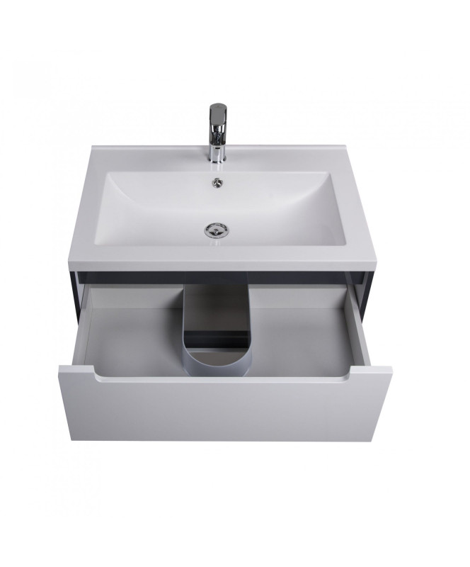 Тумба подвесная Мойдодыр Paula 60-A с раковиной Cosmopolitan ДСП/МДФ белый глянец/графит глянцевый
