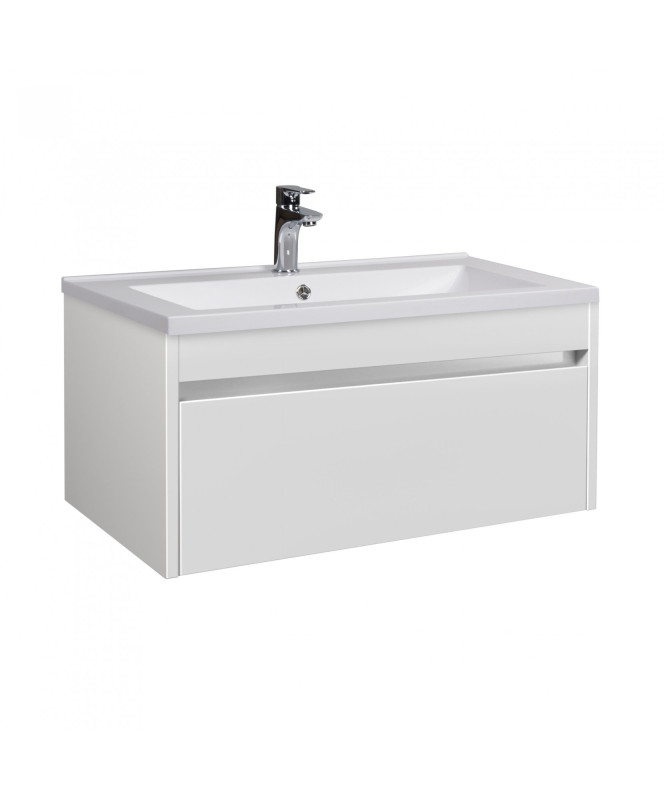 Тумба подвесная Мойдодыр Prime 80-А с раковиной Cosmo ДСП/МДФ белый глянец 00-0008150