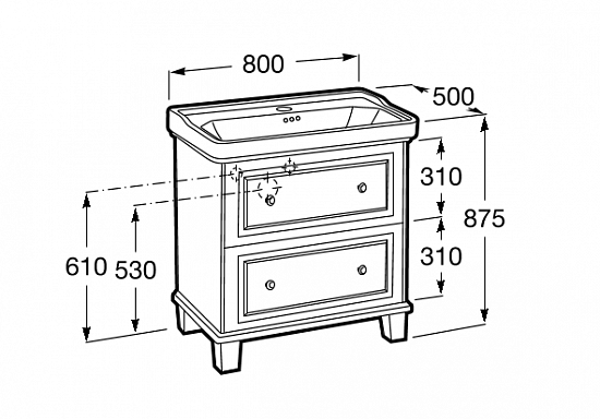 Габариты / Раковина и базовый модуль / Длина (мм): 800