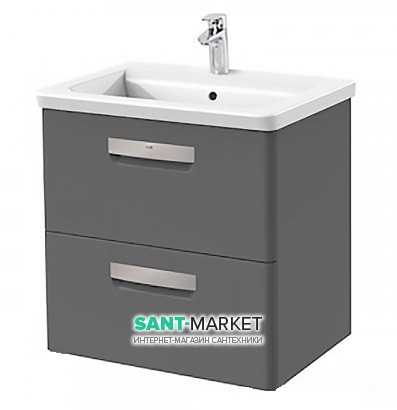Тумба подвесная с двумя ящиками МДФ 60х44 серый антрацит с раковиной для ванной Roca Gap керамика белый с сифоном A855997153