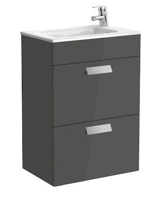 Тумба подвесная с двумя ящиками МДФ 50.5х36 серый антрацит с раковиной для ванной Roca Debba керамика белый с сифоном A855904153