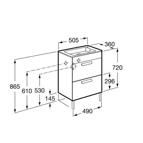 2) Тумба под раковину с двумя ящиками