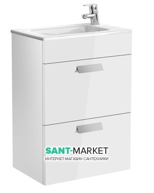 Тумба подвесная с двумя ящиками МДФ 50.5х36 белый глянец с раковиной для ванной Roca Debba керамика белый с сифоном A855904806