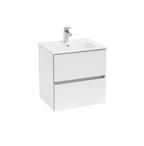 Тумба подвесная с раковиной для ванной Roca Cube 65 см белый глянцевый A85119B806
