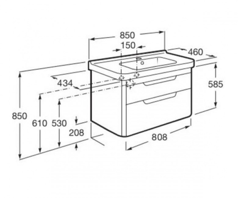 Тумба подвесная с раковиной для ванной Roca Dama-N 80,8х43,4 см серый антрацит глянец A851048153