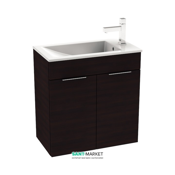 1) Тумба подвесная с раковиной для ванной Jika Cube 60х34 см тёмный дуб