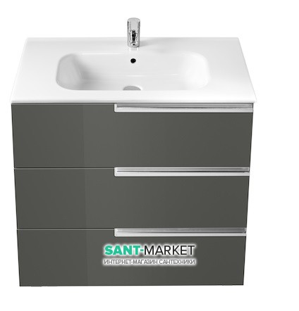 Тумба подвесная с тремя ящиками МДФ 100х46 серый антрацит с раковиной для ванной Roca Victoria-N керамика белый A855836153