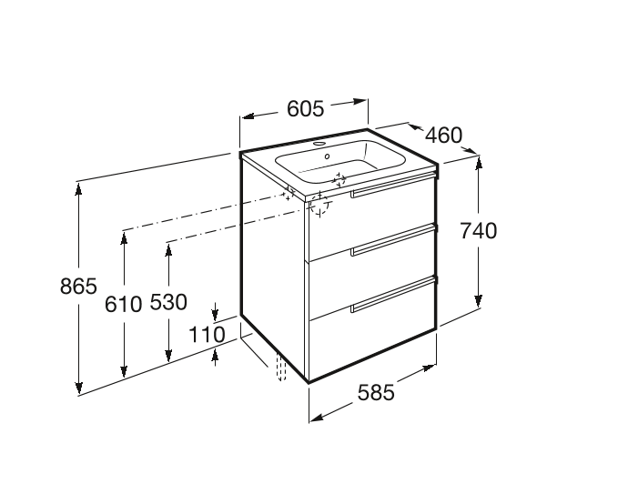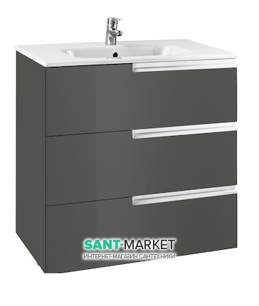 Умывальник с тумбой ROCA Victoria-N - вместительная, стильная и оригинальная модель, которая будет прекрасно смотреться в любой ванной комнате, поможет разместить большое количество вещей, благодаря наличию 3-х выдвижных ящиков, и поможет удобно разместить раковину. Изготовлена тумба из влагостойкого МДФ, а умывальник из высококачественной керамики с глянцевым покрытием. Раковина имеет отверстие для смесителя и перелив. Тумба устанавливается подвесным способом или на ножки, а умывальник устанавливается на тумбу.