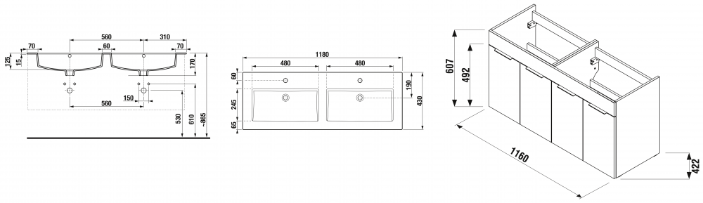 1) Тумба с двойной раковиной для ванной Jika Cube 120х43 см тёмный дуб