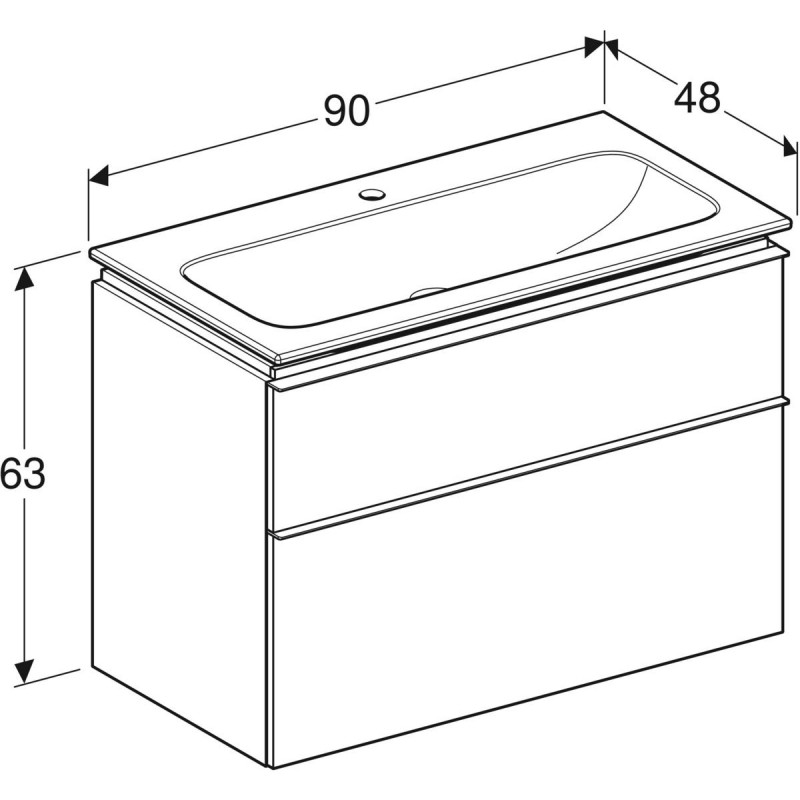 Умывальник Geberit iCon Set с узким бортиком, с тумбой, двумя ящиками и соединением для умывальника, 90x63x48 см