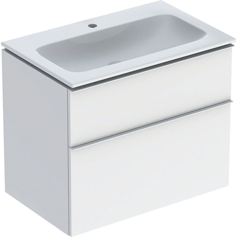 Умывальник Geberit iCon set с узким бортиком, с тумбой, двумя ящиками и соединением для умывальника 75x63x48 см, белый глянцевый/ручка белый матовый