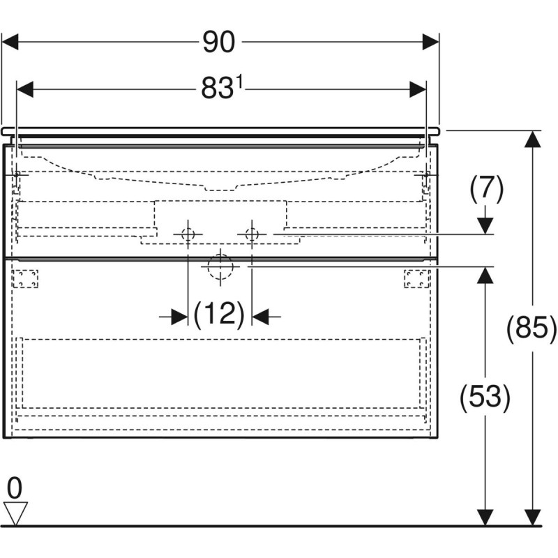 1) Тумба с раковиной Geberit iCon Set ДСП белый глянцевый/ручка хром глянцевый