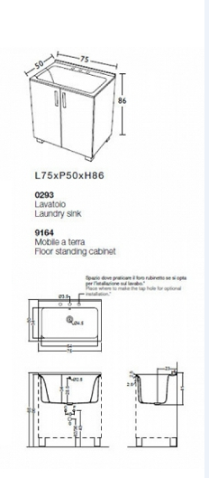 - Раковина постирочная 75х50 см (намечено 2 отверстия) и с отверстием перелива