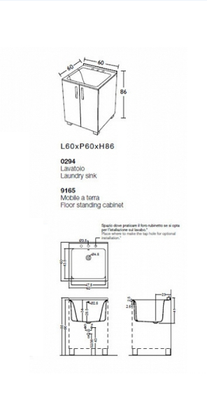 - Раковина постирочная 60х60 см (намечено 2 отверстия) и с отверстием перелива