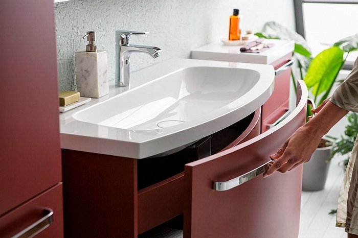 1) Тумба с раковиной Kolpa-san Adele OUA 90 91х50 см ДСП с 3D пленкой красный матовый