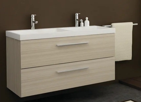 1) Тумба с раковиной Kolpa-san Jolie OUJ 120/2 120.6х66 см ДСП с ПВХ-пленкой сатин дуб