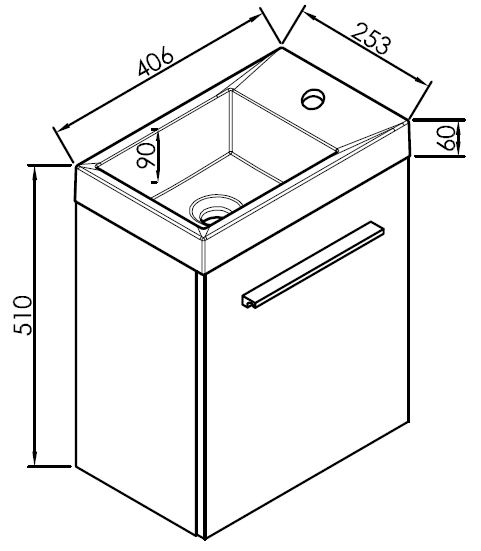 1) Тумба с раковиной Kolpa-san Kiki OUK 40 40.6х51см ДСП темный дуб