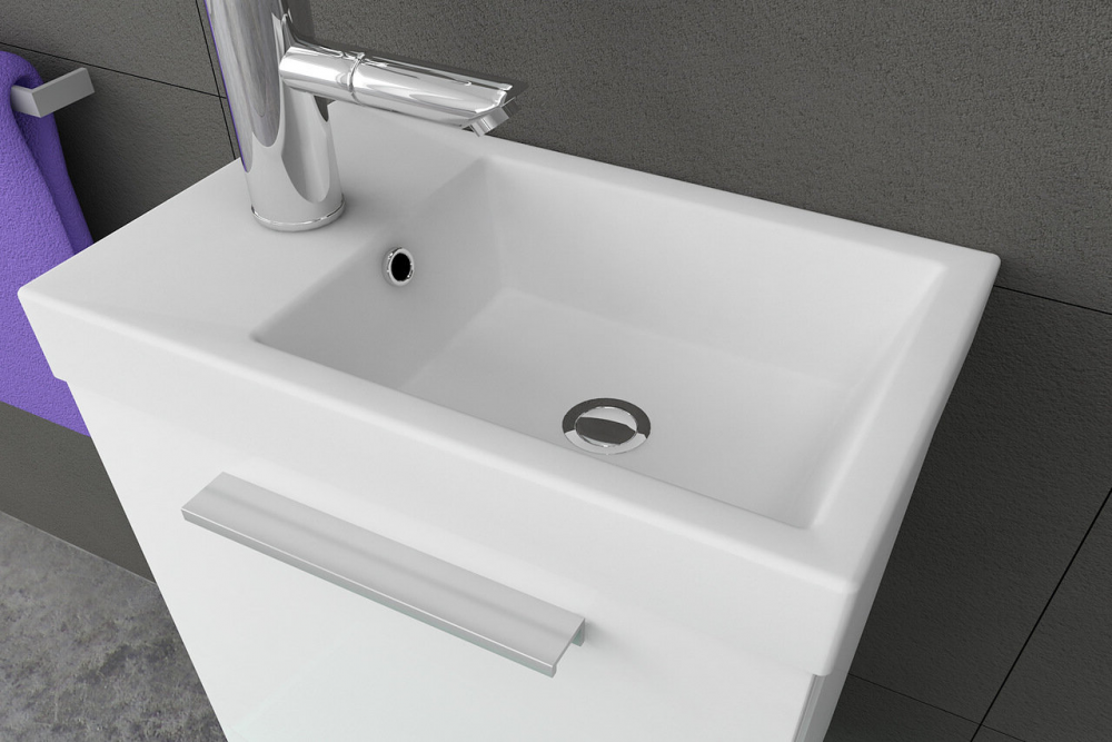 1) Тумба с раковиной Kolpa-san Kiki OUK 40 D 40.6х51 см правая ДСП белый