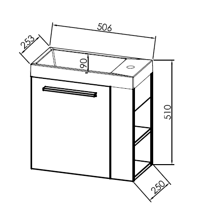 Тумба с раковиной Kolpa-san Kiki OUK 50 L 50.6х51см левая ДСП темный дуб