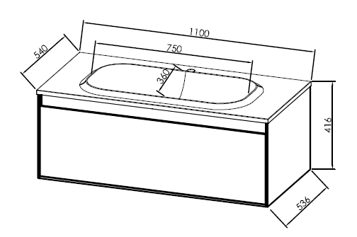 1) Тумба с раковиной Kolpa-san Pandora OUP 110 110х41.6 см ДСП белый