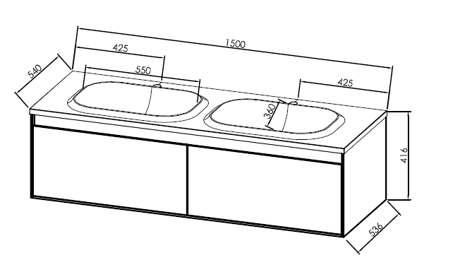 1) Тумба с раковиной Kolpa-san Pandora OUP 150 150х41.6 см ДСП черный камень