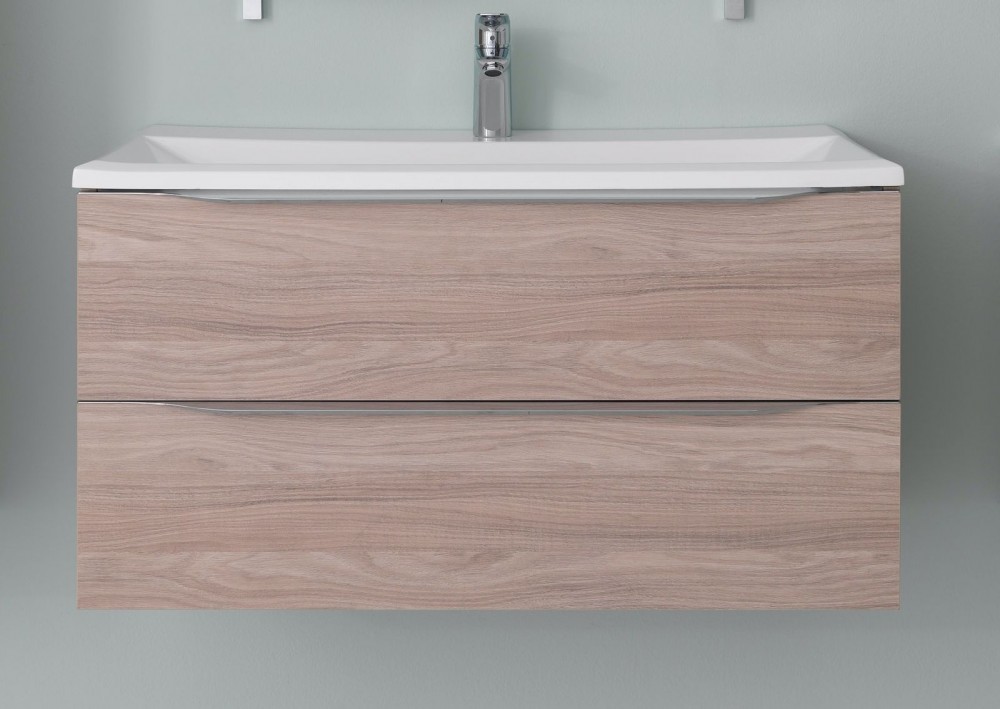 1) Тумба с раковиной Kolpa-san Tara OUT 110 111х49.5см ДСП с 3D пленкой сатин дуб