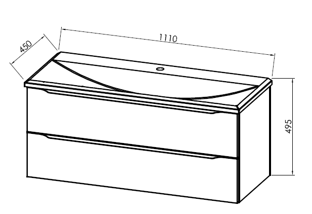 Раковина из литьевого мрамора (сифон прилагается) с мягко закрывающимися металлическими ящиками с хромированными металлическими ручками.