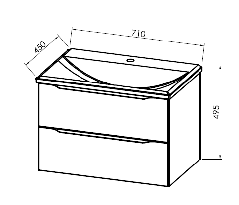 Тумба с раковиной Kolpa-san Tara OUT 70 71х49.5см ДСП с 3D пленкой темный дуб 528360
