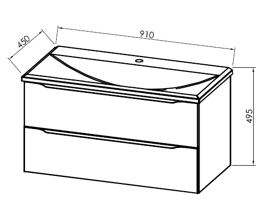 Раковина из литьевого мрамора (сифон прилагается) с мягко закрывающимися металлическими ящиками с хромированными металлическими ручками.