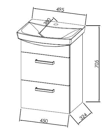 Глубина - 380 мм