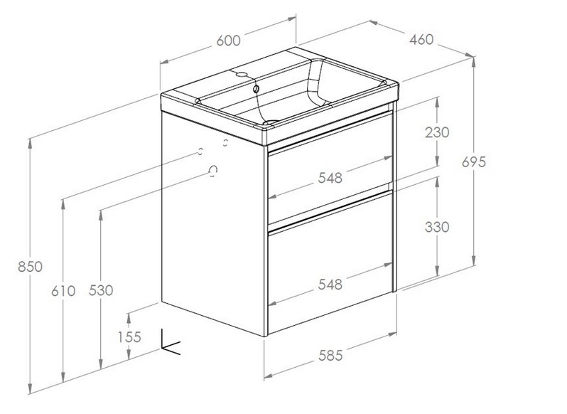 верхний ящик с вырезом под сифон, тумба без ручек (ручки можно купить отдельно), ящики с полным выдвижением и бесшумным закрыванием