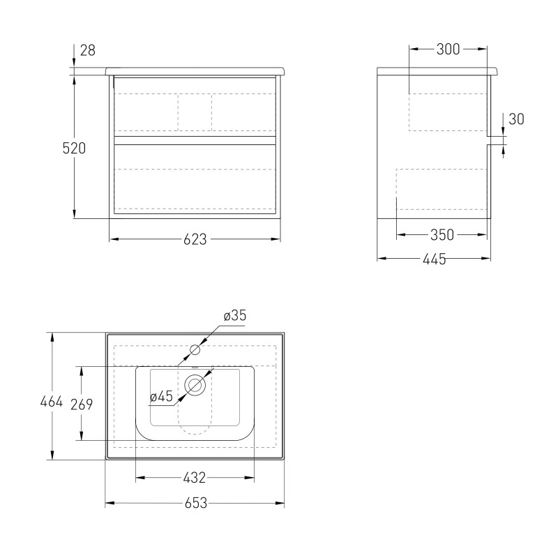 Тумба с раковиной Volle Teo 65 см подвесная ДСП бетон 15-88-61C