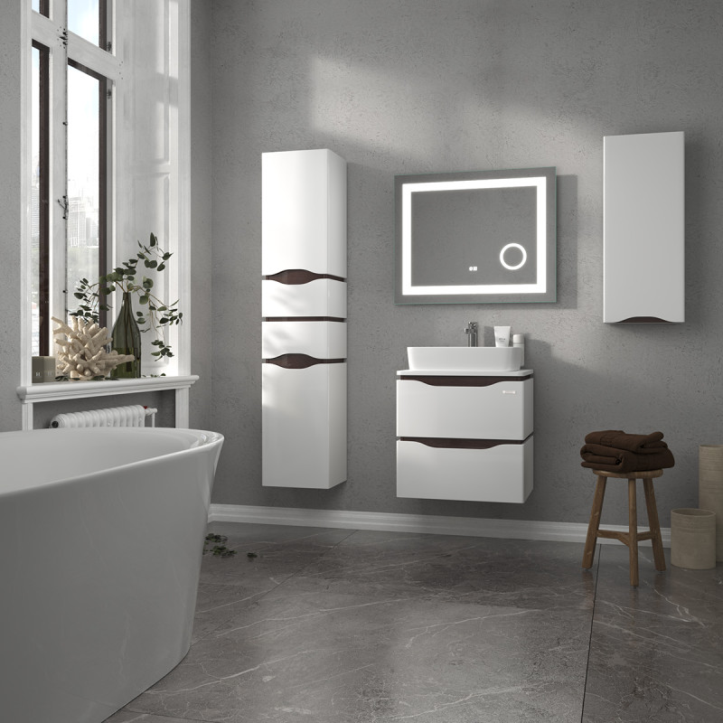 Тумба Sanwerk Alessa Air 60 см с раковиной Rapid МДФ белый/венге MV0000901