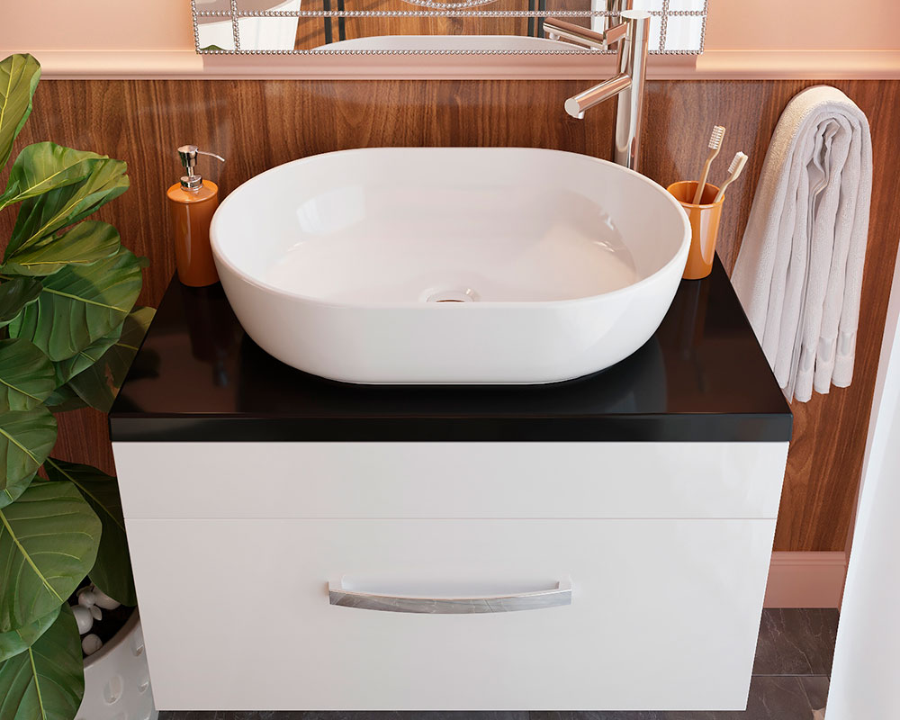 Столешница и умывальник могут быть выполнены в 46 стандартных цветах с разными цветовыми эффектами и включениями. Столешницу и умывальник Вы можете подобрать в одном цвете, что создаст идеально завершённый дизайн Вашей ванной комнате, они будут гармонировать и дополнять друг друга, смотреться стильно и дорого. Так же Вы можете заказать столешницу и умывальник в разных цветах: совершенно противоположных или же в одной цветовой гамме, но с разными эффектами. Этот эксперимент преобразит Вашу ванную комнату, придаст ей шарм и очарование, сделает её яркой, многогранной, интересной и эксклюзивной!
