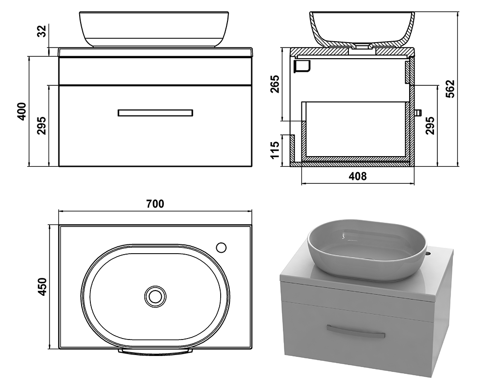 Корпус мебели покрыт тремя слоями грунтовки и окрашен четырьмя слоями влагостойкой краски. Поэтому наша мебель подходит и для сверх влажной среды, она устойчива к переменам влажности и к изменению температурных режимов.