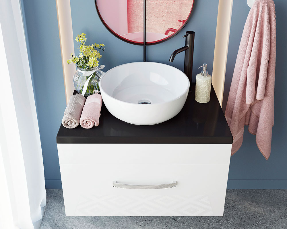 Столешница и умывальник могут быть выполнены в 46 стандартных цветах с разными цветовыми эффектами и включениями. Столешницу и умывальник Вы можете подобрать в одном цвете, что создаст идеально завершённый дизайн Вашей ванной комнате, они будут гармонировать и дополнять друг друга, смотреться стильно и дорого. Так же Вы можете заказать столешницу и умывальник в разных цветах: совершенно противоположных или же в одной цветовой гамме, но с разными эффектами. Этот эксперимент преобразит Вашу ванную комнату, придаст ей шарм и очарование, сделает её яркой, многогранной, интересной и эксклюзивной!