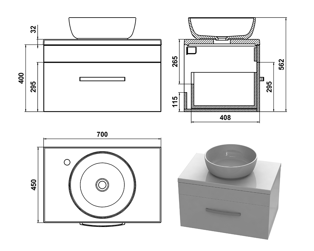 Корпус мебели покрыт тремя слоями грунтовки и окрашен четырьмя слоями влагостойкой краски. Поэтому наша мебель подходит и для сверх влажной среды, она устойчива к переменам влажности и к изменению температурных режимов.