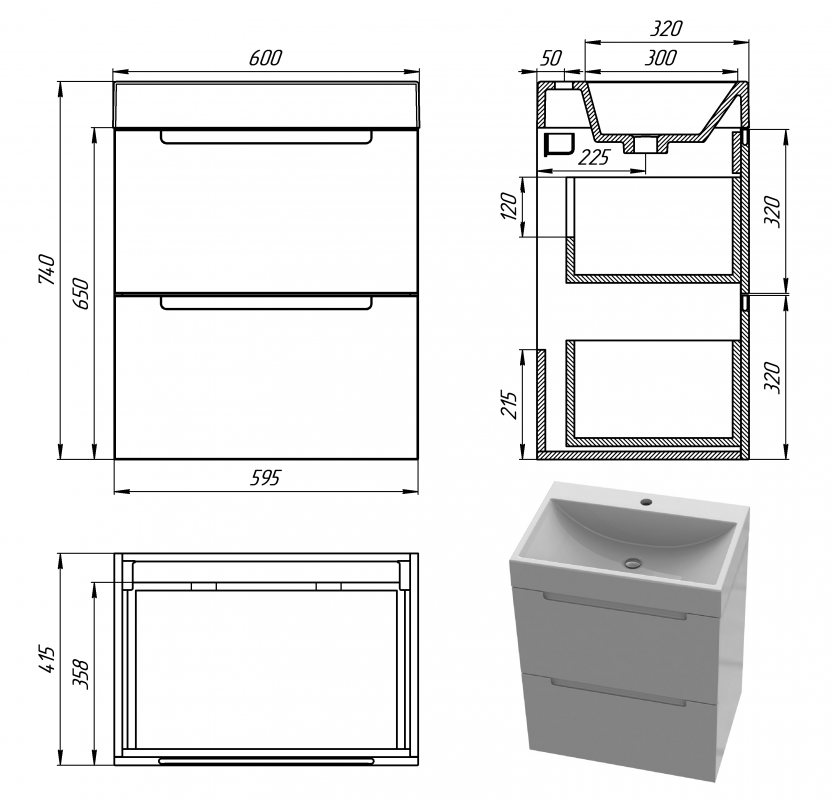 Размеры тумбы (ш*г*в): 600х415х650 мм
