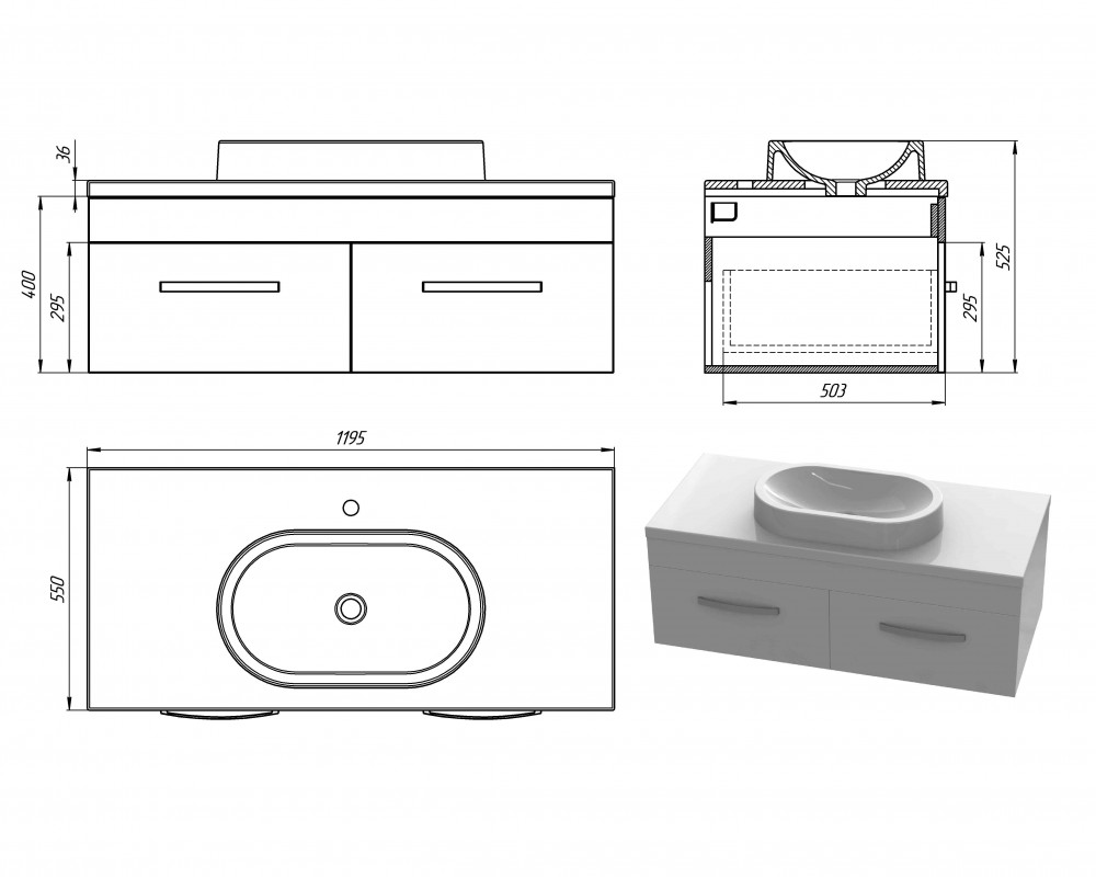 Размеры тумбы (ш*г*в): 1200х550х400 мм