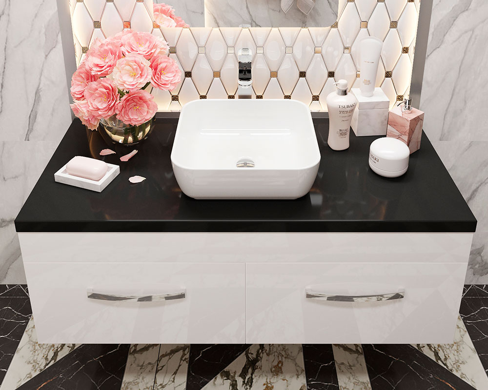 Столешница и умывальник могут быть выполнены в 46 стандартных цветах с разными цветовыми эффектами и включениями. Столешницу и умывальник Вы можете подобрать в одном цвете, что создаст идеально завершённый дизайн Вашей ванной комнате, они будут гармонировать и дополнять друг друга, смотреться стильно и дорого. Так же Вы можете заказать столешницу и умывальник в разных цветах: совершенно противоположных или же в одной цветовой гамме, но с разными эффектами. Этот эксперимент преобразит Вашу ванную комнату, придаст ей шарм и очарование, сделает её яркой, многогранной, интересной и эксклюзивной!