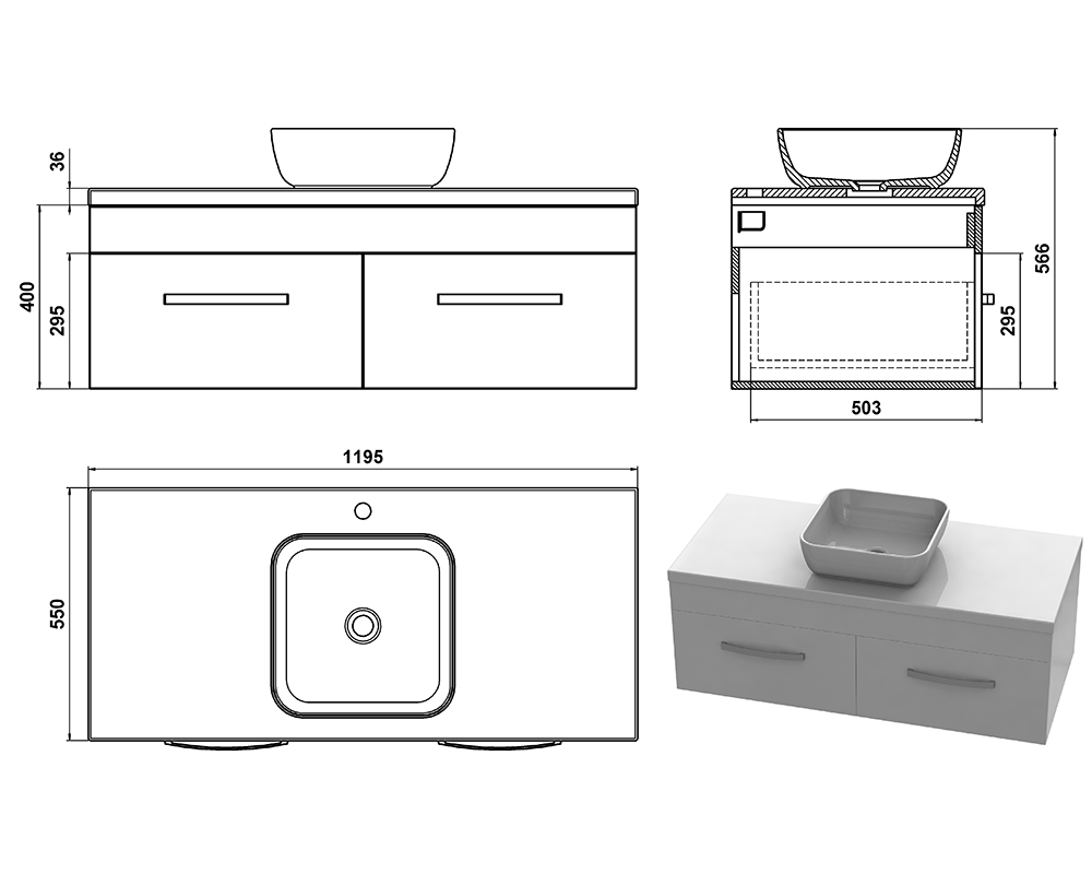 Размеры тумбы (ш*г*в): 1200х550х400 мм