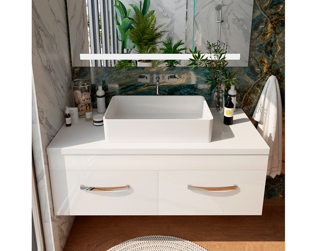 Столешница и умывальник могут быть выполнены в 46 стандартных цветах с разными цветовыми эффектами и включениями. Столешницу и умывальник Вы можете подобрать в одном цвете, что создаст идеально завершённый дизайн Вашей ванной комнате, они будут гармонировать и дополнять друг друга, смотреться стильно и дорого. Так же Вы можете заказать столешницу и умывальник в разных цветах: совершенно противоположных или же в одной цветовой гамме, но с разными эффектами. Этот эксперимент преобразит Вашу ванную комнату, придаст ей шарм и очарование, сделает её яркой, многогранной, интересной и эксклюзивной!