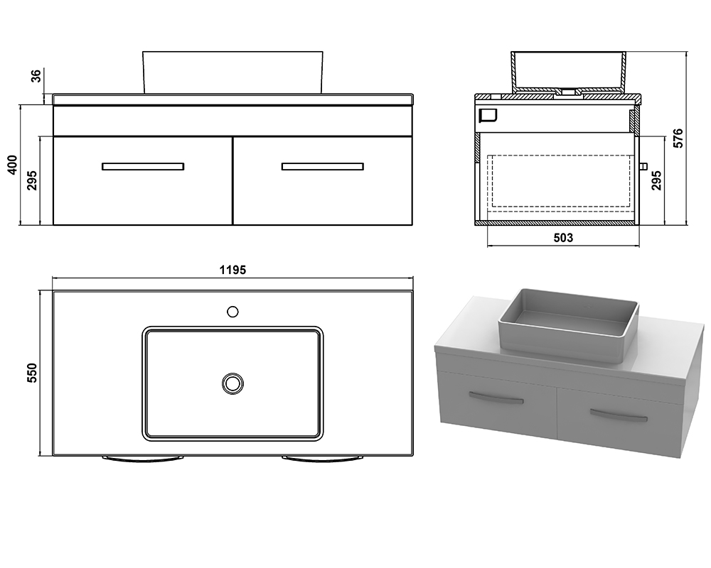 Размеры тумбы (ш*г*в): 1200х550х400 мм