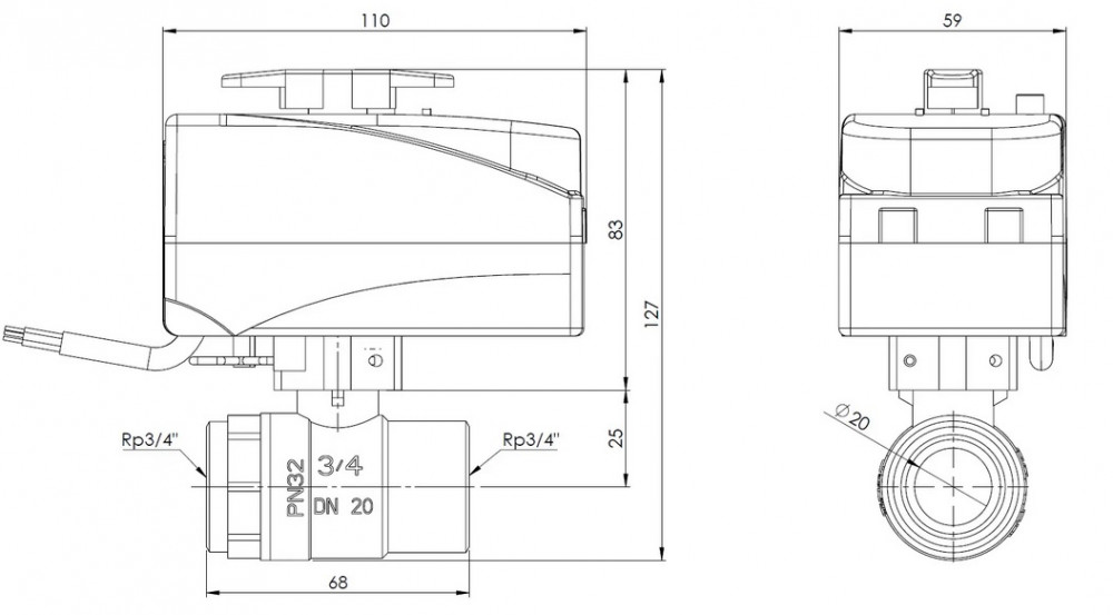 2-ходовий кульовий клапан Afriso з приводом BEV DN20 Rp ¾'' kvs 45 230 В н/з