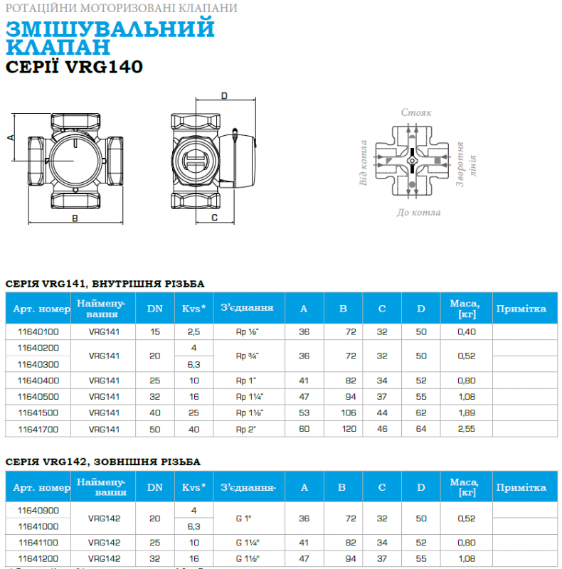 Серія VRG230 - це 3-ходові клапани дляоперацій перемикання відведення на середній отвір. Клапани виготовлені з високопродуктивної латуні, що дозволяє їх використання в системах опалення та охолодження. Серія VRG доступна у типорозмірах DN15-50. У комплект поставки входять різні типи приєднань для більшості труб. Клапан чудово комбінується з приводами та контролерами ESBE